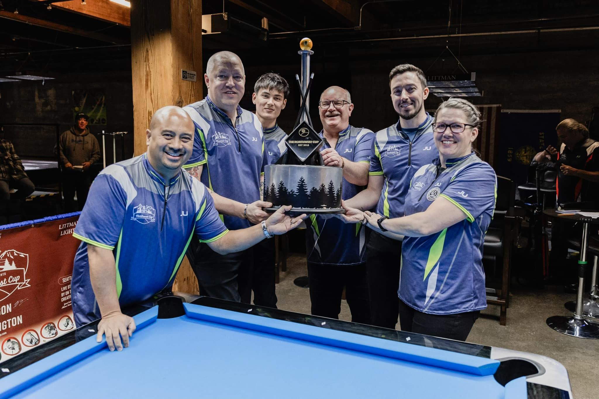 The Northwest Cup is an annual "Mosconi Cup Style” competition in which the participants play matches of both singles and scotch doubles in the game of 9-ball. It is a 2-day contest, which usually takes place on a Saturday and Sunday in the month of November. The 2025 Northwest Cup is scheduled for November 8-9, 2025. The Northwest Cup showcases the best pool players from the states of Oregon and Washington while providing a fun, spectator-friendly atmosphere for the patrons and an intense, pressure-packed experience for the participants. This is accomplished with the utmost respect and sportsmanship, with an eye towards elevating the status of the game of pool in the Northwest and around the world. Each team consists of five members, whose total Fargo rating shall not exceed 3300. Each team shall have as a member at least one woman. All player candidates shall have demonstrated a track record of behavior and attitude consistent with the mission statement of the Northwest Cup.